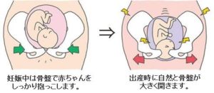 出産にあたり骨盤の恥骨結合という部分が緩み骨盤が開くのですが、この部分は産後6週間くらいで緩んだ靭帯が硬くなり、元の骨盤の状態に戻るのに3~4カ月くらいかかります。