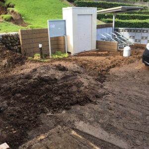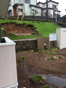 駐車場横の芝生の所が土砂崩れしてこんな事に(´;ω;`)ウッ…