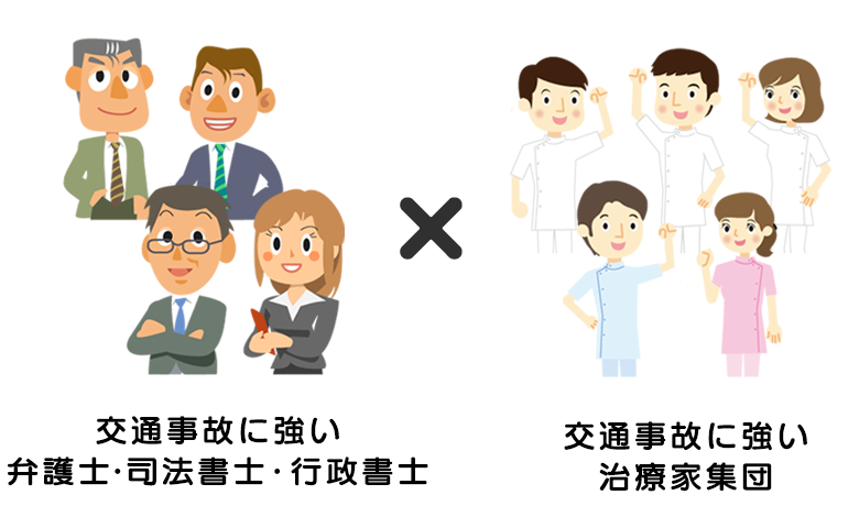交通事故の治療だけでなく、弁護士や整形外科などの専門機関と連携し、事故後の全てのサポートを行います。
